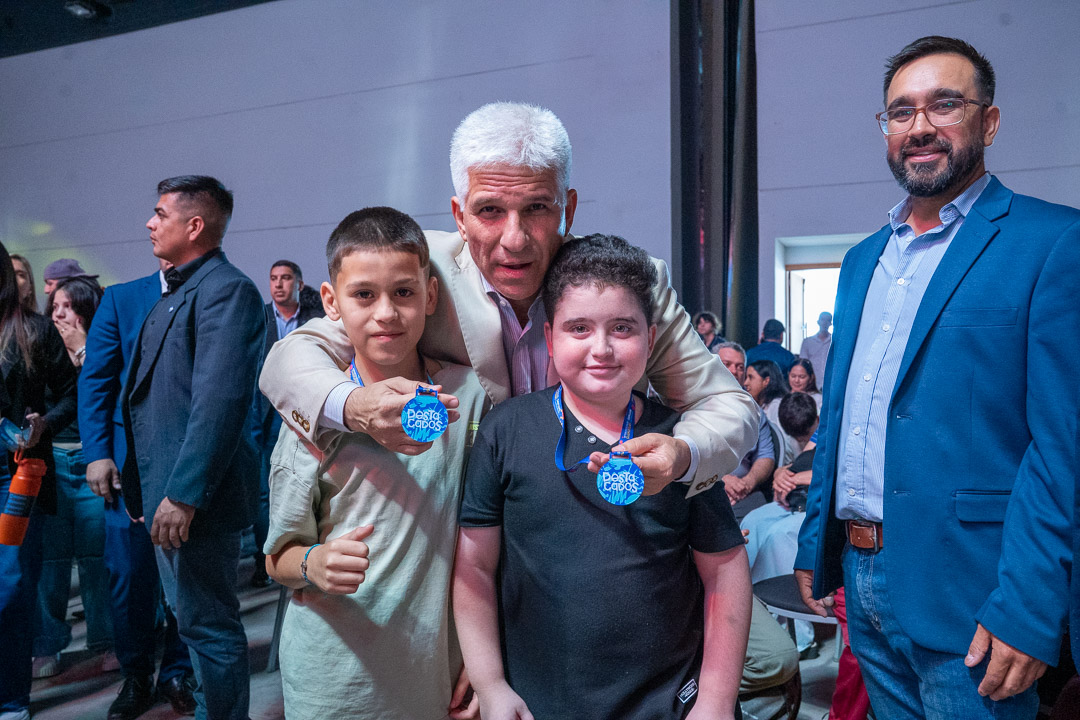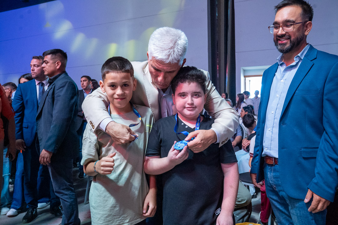 Durante la entrega de premios también estuvo presente el gobernador Claudio Poggi, quien se fotografió con los estudiantes y acompañó la celebración de este logro institucional.