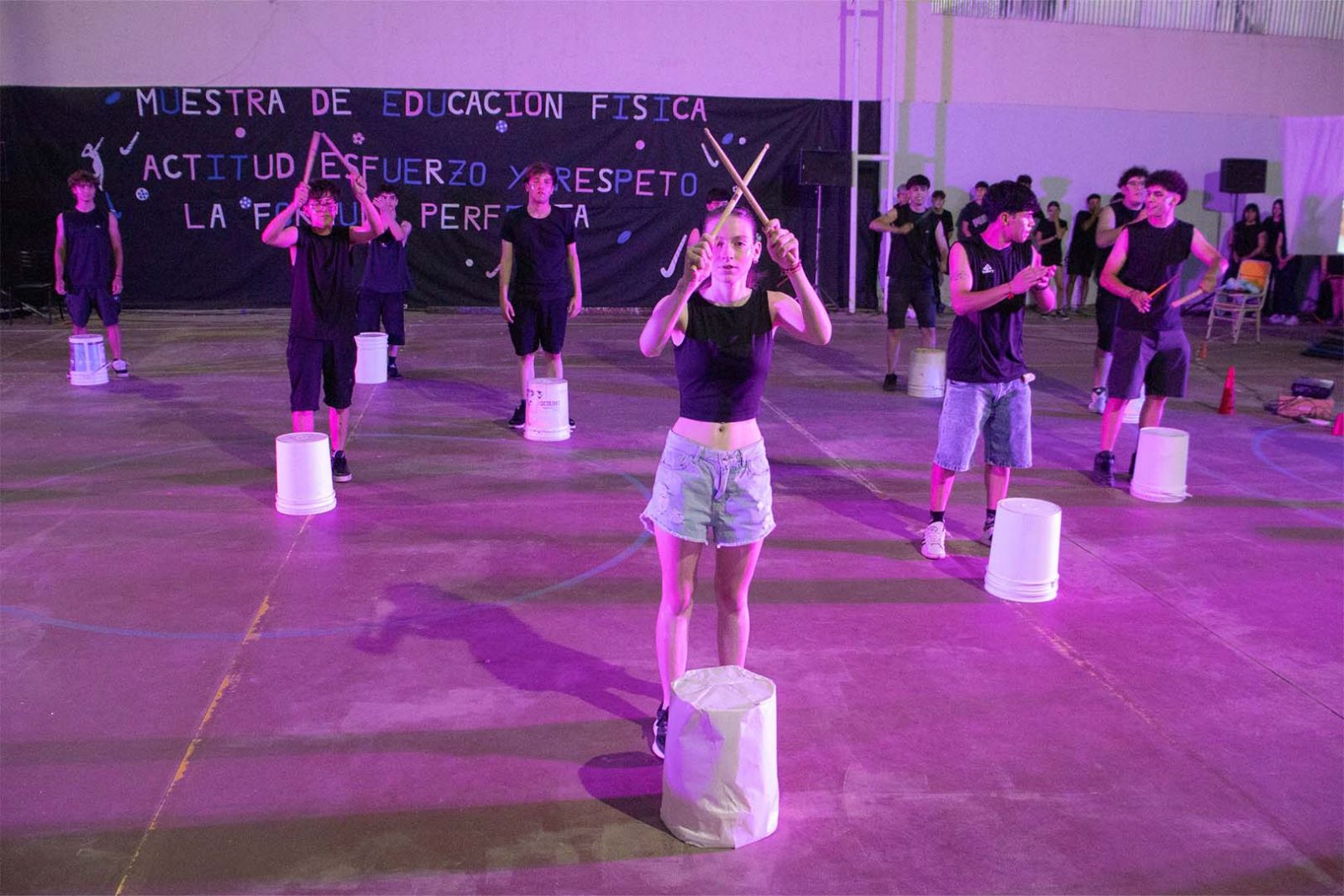 Los agrupamientos Aquarius, Columba, Phoenix, Pyxis, Orion y Lepus presentaron circuitos de carreras, saltos, coordinación, motricidad y habilidades con pelotas. El gran cierre estuvo a cargo de coreografías originales diseñadas entre docentes y alumnos, con una protagonista destacada: Nazarena Ávila. La estudiante de prepromo y profesora de baile tomó un rol central en la creación artística. “Ayudé a los profes a organizar las coreografías. Buscamos música bien pila y positiva para que la gente se enganche”, contó.