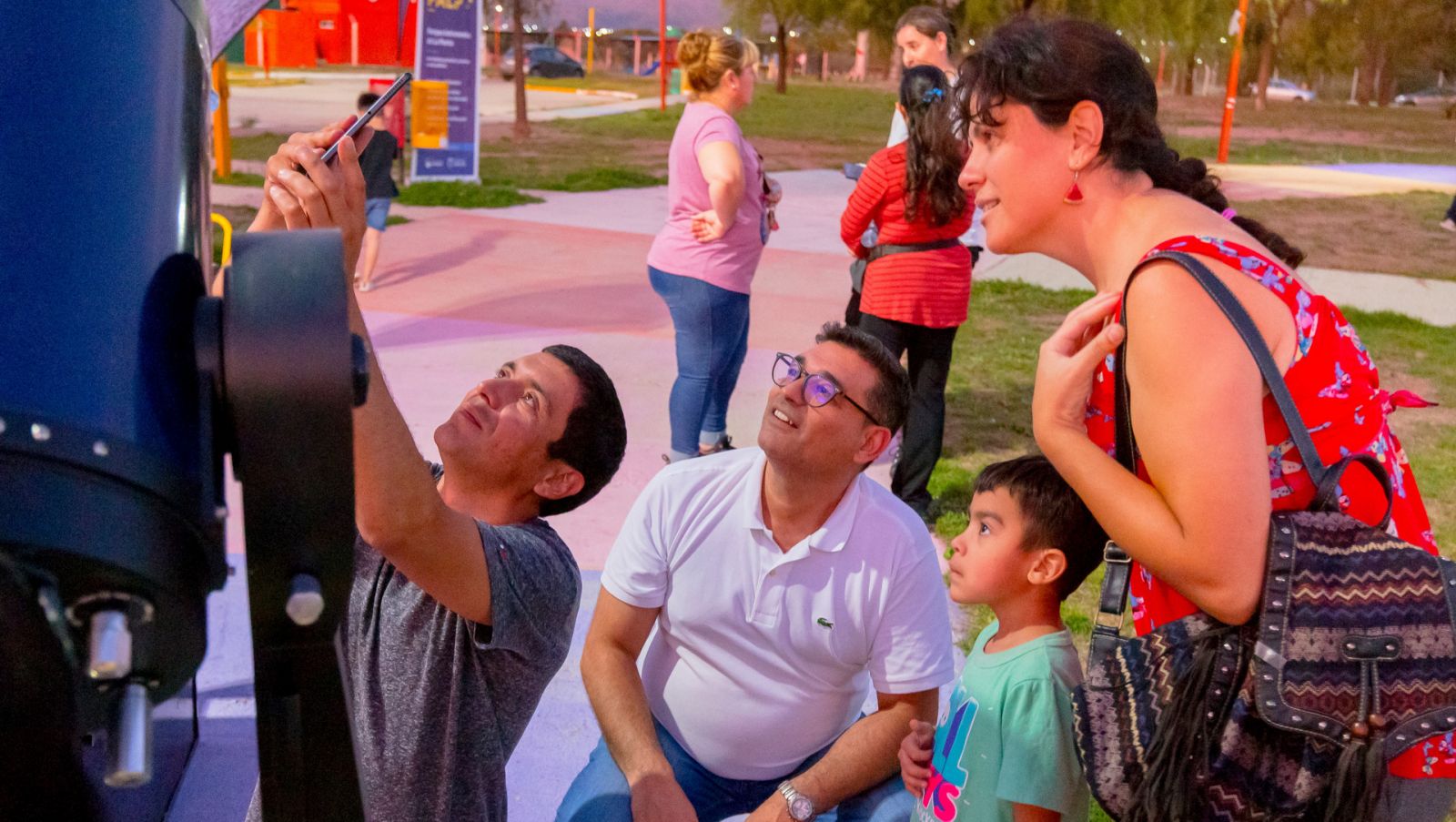 “Papá Noel se encuentra en el cielo y con esa excusa vamos a utilizar los telescopios de la ULP para ver la Luna y Saturno”, comentó Marcos Lucero, secretario de Extensión y Vinculación de la Universidad. Al hacer un análisis del día en la plaza, agregó: “Ha sido un éxito rotundo. Los vecinos se acercaron a jugar al ajedrez, a tener experiencias en la realidad virtual, a reciclar. No dejaron ningún stand por recorrer”.